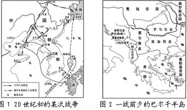 (1)据材料一和所学知识,图1反映的是哪一次战争形势?图2中除俄国外,还有哪一国家积极插手巴尔干事务?(2分)图1和图2集中反映出当时怎样的国际形势?(4分)