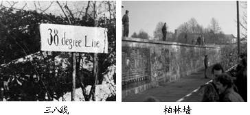 (2)据材料二和所学知识,“三八线”和“柏林墙”主要是哪一国际因素的产物?对比材料二,这一时期国际关系的变化有哪些突出表现?(6分)