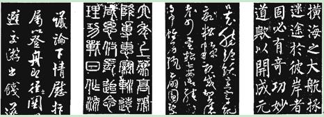 5、选择题  下列书法作品中,能够体现“兼有楷书和草书的长处,既工整清晰,又飞洒活泼”书体特色的是(   )
