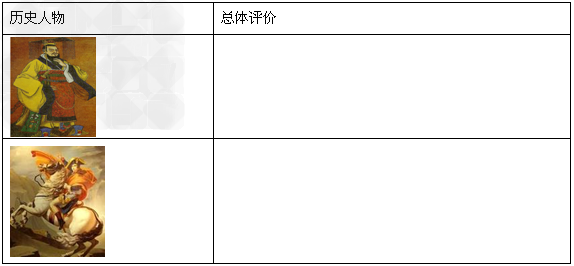 2.秦始皇:实现全国统一;建立中央集权制度;开疆拓土;在全国范围内推行郡县制;统一文字、货币、度量衡。加强思想文化控制(或焚书坑儒);大兴土木;严刑酷法、赋役繁重、实行暴政。拿破仑:平定王党叛乱稳定政局;颁布《拿破仑法典》巩固革命成果;多次打败反法同盟,打击欧洲封建势力;传播革命思想和法制原则;促进资本主义发展。实行军事独裁;发动侵略战争等。