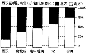 本题解析:依据图中数据可以看出,西汉至明初南北方人口变化趋势,北方人口逐渐减少,南方人口逐渐增加,由此可以得出人口流动,同时也反映了经济重心的南移,和南北经济发展状况,图中没有反映出农工业的比例变化,因此不能反映经济结构的变化来,所以选A