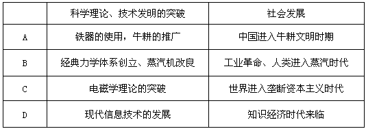 3、选择题 科学理论、技术发明的突破是社会实现跨越式发展的关键,下列科学理论、技术发明的突破和社会发展因果关系不正确的是( )