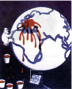 1、判断题 下图是反映二战时期的漫画《希特勒用鲜血重新粉刷地球》,它的寓意是
