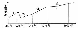 3、判断题 下图是美国在20世纪各个时期经济发展状况示意图,其中标号③阶段发展的原因是?
