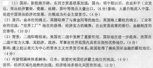 (2)根据材料二概括“世界货币进入英镑时代”的原因。 (10分)