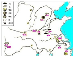 本题解析:该题属于利用图片进行不同历史阶段时代发展特征的比较型试题。解决该类题目的关键是另个,一是准确获取图片蕴含的有效信息,二是合理调用教材中对应的核心知识点进行比较和论证;图中主要反映了唐代和明朝工商业的地区分布地点和数量上的不同,结合时代背景,从中随意选择两个方面加以比较即可。