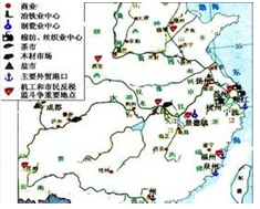 图一 唐朝工商业城镇分布图 图二 明朝中后期工商业城镇分布图