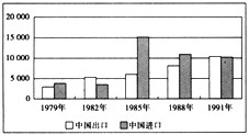 4、判断题 以下是1979——1991年的我国对日贸易(单位:百万美元)示意图,导致对日贸易变化的主要因素有