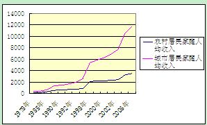 材料一:1978年以来我国城乡居民家庭人均收入增长示意图