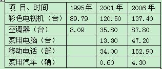 材料二:1995年以来我国城镇居民家庭平均每百户耐用消费品拥有量