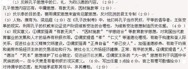 结论:材料一中的孔子代表奴隶主贵族,政治上是落后的;材料二的孔子代表地主阶级,政治上是进步的。(4分)