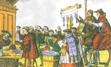 1、判断题 右图反映的是罗马教廷兜售赎罪券的情景。有关该图的历史阐释正确的是