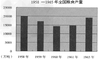 (2)依据材料二分析1958~1965年我国粮食产量的变化情况及原因。?