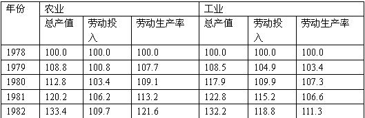 4、判断题 下表反映了1978—1982年中国工农业总产值,劳动投入和劳动生产率的指数变化(注:均以1978年为100)。对其解读正确的是(?)