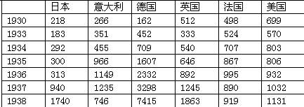 材料一? 1930—1938年大国国防开支(以当时百万美元为单位)