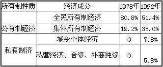 5、判断题 下表是1978年和1992年我国国民经济成分比较表。它主要说明