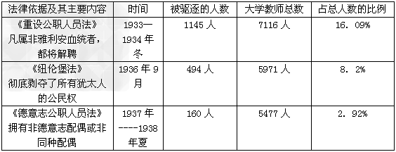材料二?仅就是1933年这场知识难民潮就为美国送来了以爱因斯坦为代表的7名诺贝尔奖的得主和8名即将要拿到诺贝尔奖的人。德国1933年以前的获奖者在世的只剩下7个人了,由于有以德国科学家为代表的这批欧洲新生科学家的加盟,美国远远地超过了德国,达到了25人。成为了世界上诺贝尔自然科学奖项得主最多的国家。这25人当中还不包括以1945年以后在美国获奖的欧洲流亡科学家。也不包括那些当年随着父母来到美国,完成学业,最后获得诺贝尔奖的第二代流亡者。所以正是这些杰出人物的到来,才为美国带来了德国科学体系中最科学的方法论,最严谨的学风。所以,今天美国的诺贝尔自然科学奖项的得主,已经超过了200人。显然与这批流亡科学家在美国开拓的新方向以及由此在美国营造出的那种特殊的学术竞争氛围密切相关。当然,这些欧洲的精英们对美国的贡献远远不止在自然科学领域。同样在人文社会科学及运用领域,他们的才华也照样大放光彩。