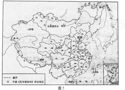 5、选择题 杰出历史人物在历史上产生过重大作用。回答下面试题。1.公元前127年,汉武帝下了一道法令,规定诸侯王死后,嫡长子可继承封地的一部分,余下的封地分给其他子弟。这项措施的影响是2.图5所示为我国古代某个时期的疆域。为此疆域的确定做出直接贡献的皇帝是