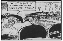 分床睡的,我不会被传染!” 右边床上依次是:斯大林瘙痒症、希特勒炎症、闪电战瘟疫、
