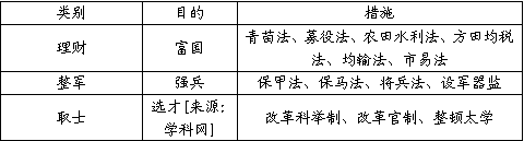 (2)王安石变法的许多措施既有成功之处,又埋伏着失败的祸患。从材料二选择两项符合上述结论的措施,并说明理由。