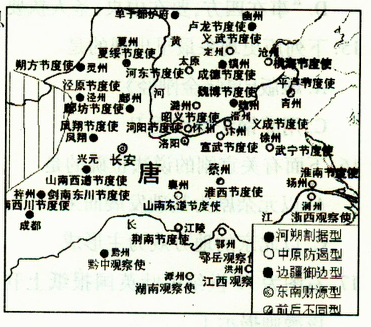1、选择题 下图为“唐朝后期形势图”,下列表述与图中信息不相符的是 ( )