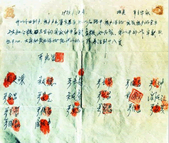 4、判断题 图是安徽省风阳县小岗生产队社员在20世纪70年代末签订的一份契约:“我们分田到户,每户户主签字盖章。……如不成,我们全部坐牢杀头也甘心。”这份契约签订的背景是