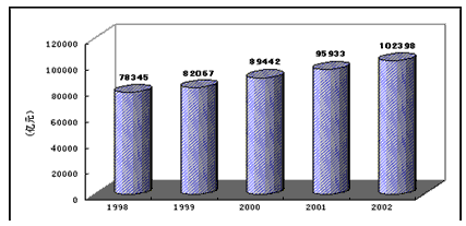 ? 材料二 1998—2002年国民生产总值变化示意图