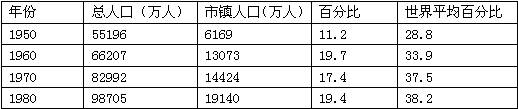 5、判断题 下表是1950年—1980年主要年份城镇人口比重表
