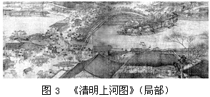 材料二:有人说,欣赏《清明上河图》“恍然如入汴京(东京),置身流水游龙间,但少尘土扑面耳”。