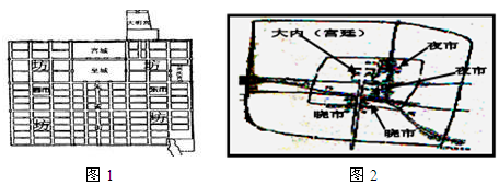 (2)阅读材料一、二,从图2、3提取历史信息,说明北宋东京与图1所示城市相比,在商业活动方面发生了什么变化。反映了商业发展的什么特点?