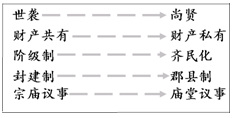 本题解析:考查古代中国的政治制度。由从世袭、财产共有、阶级制、封建制、宗庙议事到尚贤、财产私有、齐民化、郡县制、庙堂议事,反映此时出现私有制、打破了血缘世袭的局面。