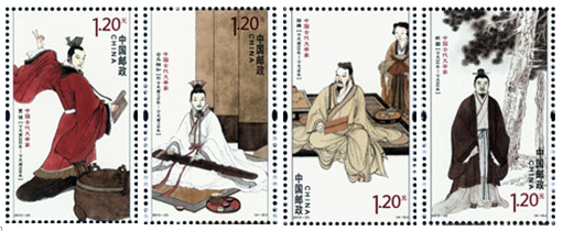 2、选择题 下图为中国邮政发行的主题为“中国古代文学家”的纪念邮票,包括生活在同一时代的四个人物:贾谊、司马相如、扬雄和班固。将他们列为一组是因为他们的作品