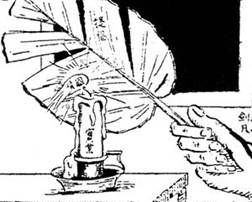 5、判断题  下面这幅图是著名漫画家剑凡创作于20世纪30年代的作品,一把写着“提倡”的残破扇子,扇着写着“实业”的燃烧着的蜡烛,这幅漫画的含义是