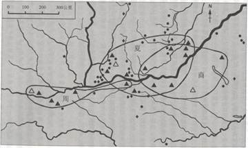观察图,概括夏商周三代都城分布的特点。(2分)结合史实,分析其原因。(6分)