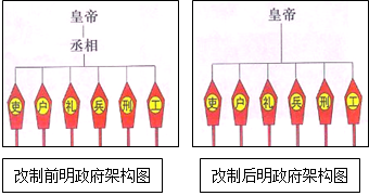 (1)据材料一指出,两图显示的明朝中央行政机构有什么区别?为什么有这样的改变?(6分)