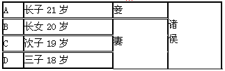 5、选择题 西周某诸侯有一妻一妾四个子女,依据宗法制的继承原则,下列表格中谁有资格继位当诸侯( )。
