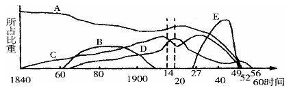 本、外国资本、洋务资本与官僚资本的发展变化情况,其中曲线E代表官僚资本,请问ABCD