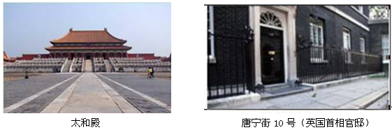 (3)太和殿高大雄伟,象征皇权至上;唐宁街10号平实素朴,却是英国行政中枢,体现民主政治风格。(8分)