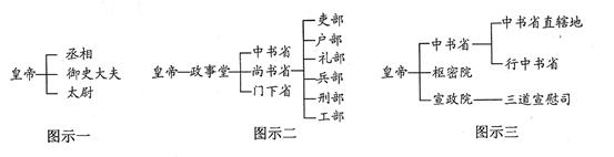 (2)材料一图示三所示的政治制度与图示二相比,有哪些创新性的变化?(4分)