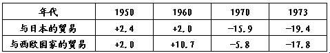 材料二 1950——1975年间,美国工业生产平均年增长3.8%,英、法、联邦德国平均为5.4%,日本为12.4%。1951——1977年,美国工业劳动生产率平均增长3.2%,日本为8.8%,联邦德国为4.4%,法国为4.3%。