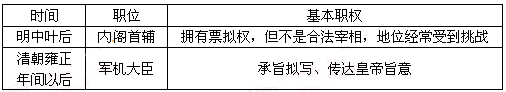 材料三 废丞相后与丞相地位近似官职的基本职权情况表