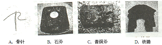 1、选择题 工具的进步不仅是生产力发展的重要标志,也是人类文明转型的巨大杠杆。下列图片中所反映的工具,足以说明人类已经开始从蒙昧野蛮跨入文明时期的是( )