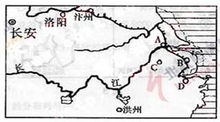 3、选择题 下图为隋唐时期局部图。A、B、C、D四城市中,同时以铜镜、造船业和纺织品著称的是