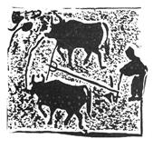 本题解析:该题为图表选择题,旨在考查识读历史文物图画的能力和我国古代农业方面的有关知识。犁耕法是西汉时发明的先进耕作方法,题中图画所示犁耕法俗称“二牛抬杠”,图画