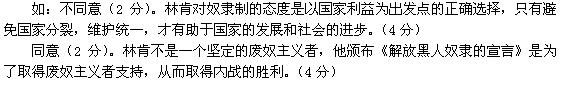 参考答案:(1)贡献:解放了黑人奴隶,维护了国家统一。(4分)