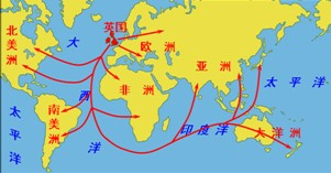 5、选择题 下图是19世纪中期英国的海外贸易示意图,根据所学知识判断,下列表述准确的是