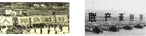 4、判断题 下图是两个不同时期参与天安门广场游行的群众队伍,方阵中的标语反映了当时我国对农村政策的调整。以下阐述正确的是