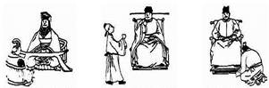 图三个场景描述的是我国古代君主和丞相关系的变化(坐而上朝、站而上朝、跪而上朝),它从本质上反映了