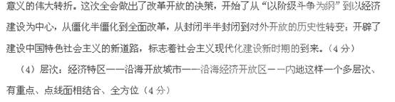 参考答案:(1)指的是建立了四个经济特区。(2分)