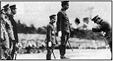 4、判断题 1940年10月日本军事检阅时,日本陆军大臣东条英机向裕仁天皇行鞠躬礼(见右图)。有人认为,真正的权力天平却正好相反,裕仁天皇虽被日本人奉为活着的神明,但他在日本外交政策上却不起任何作用。这种观点的主要依据是( )